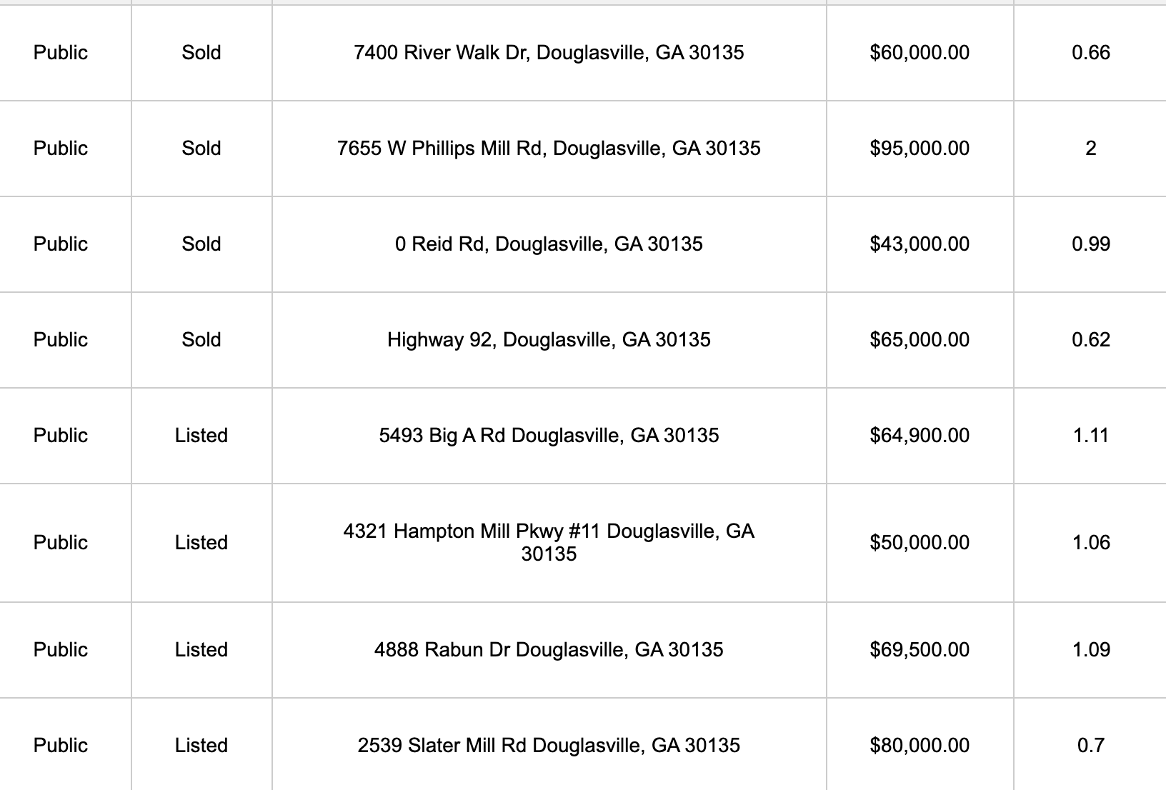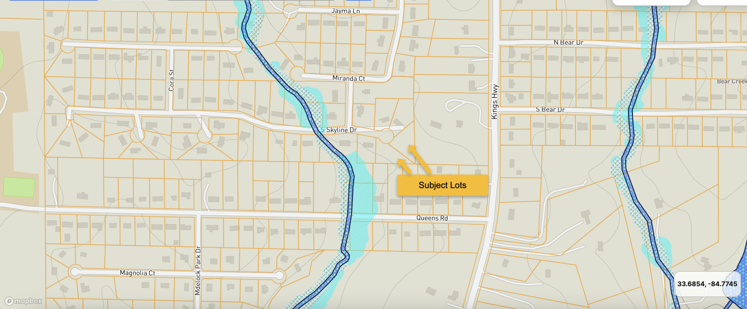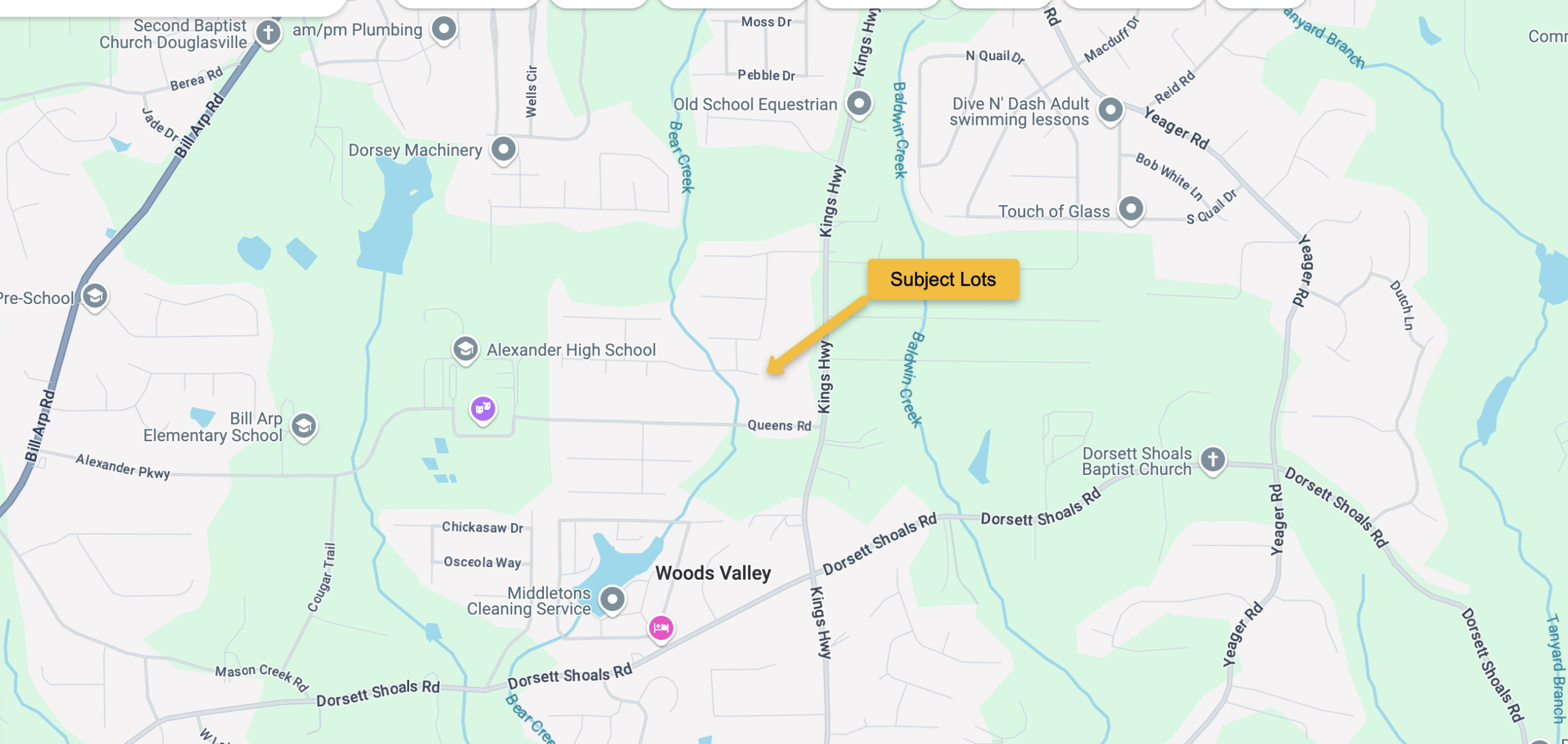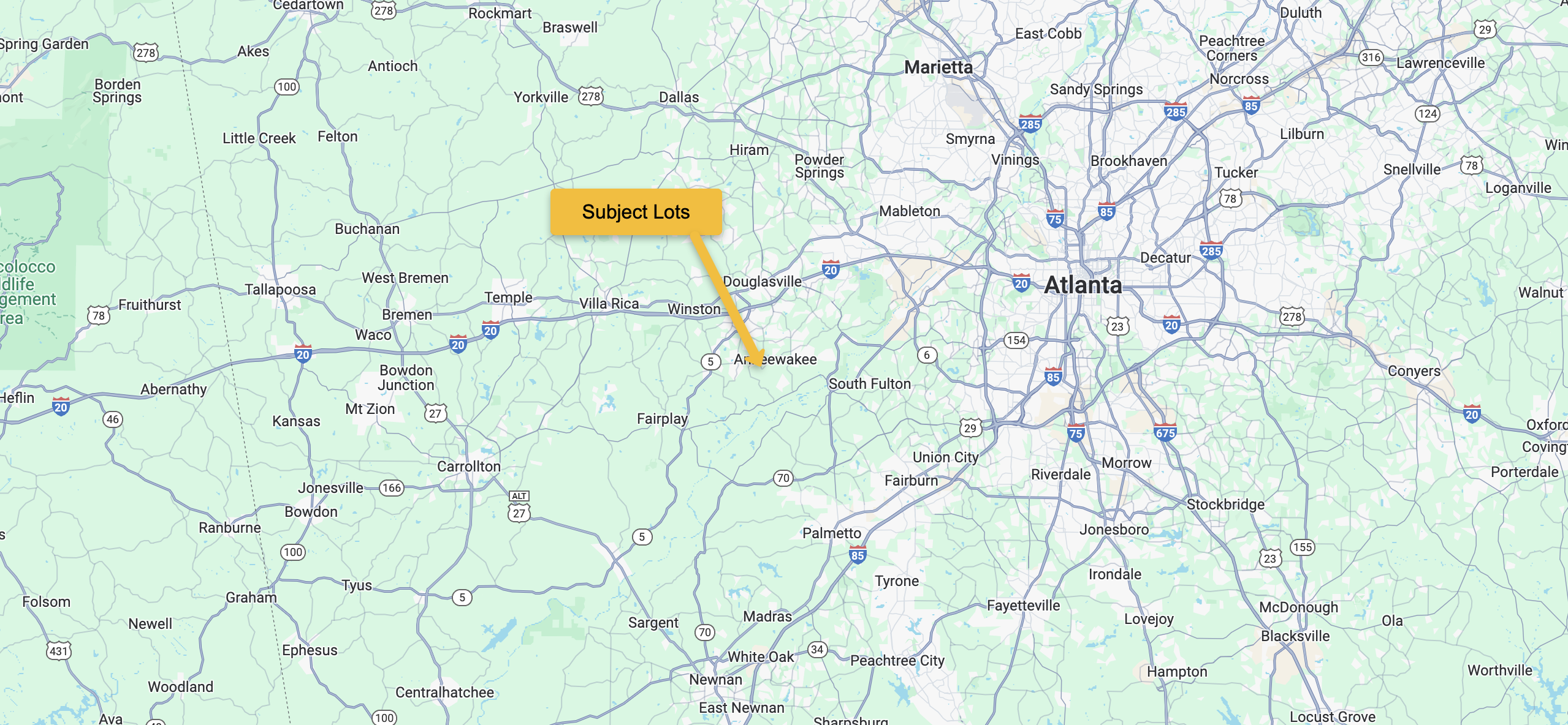 Two side-by-side residential lots located in Douglasville GA totaling 1.17 acres for less than $30k.
